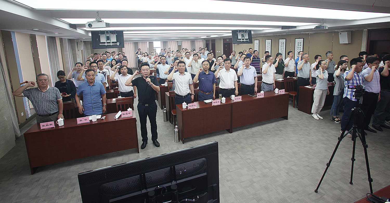 揚建網訊 為紀念中國共產黨成立97周年,結合集團2018年黨建工作總體要求,不斷增加黨組織的創造力、凝聚力和戰斗力,進一步推動集團各項改革發展工作 ,7月8日下午,集團黨委在揚州運河城市廣場B座14樓會議室舉辦了“不忘初心、牢記使命”主題教育活動。活動由黨委副書記張振新同志主持,集團在揚黨委委員、高管、總部及基層黨員干部共115人參加。
