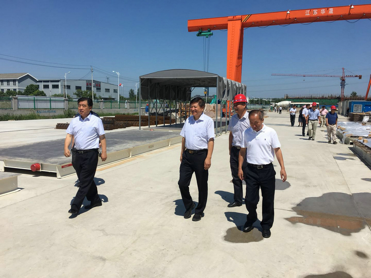 揚建網訊 為了解我市建筑產業化發展現狀和發展過程中存在的問題、促進建筑產業綠色發展、推動我市建筑業轉型升級,同時為市人大常委會聽取并審議我市建筑產業化發展情況提供客觀實際的參考意見,8月24日上午,市人大常委會副主任楊正福、副秘書長吳效安等一行8人,來到江蘇華晟新型建筑科技有限公司視察調研。華晟公司董事長梁云彪、總經理季學軍等陪同調研。