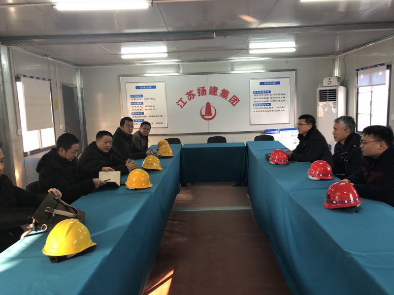 揚建網訊 1月20日上午,市建設局副局長成自勇帶領市安監站、開發區質安站相關領導專程來到集團總包承建的臨港孵化基地二期項目檢查并主持召開現場座談會,集團副總丁傳武、安全監督部部長朱曉軍等參加。