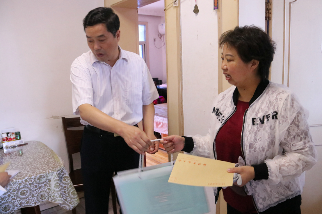 揚建網訊 時值中秋佳節,市總工會陳錫朝副主席、韓士軍副主席、樊秉強副調研員分別帶領建設產業主任范華、經審委主任葉東富等一行,走訪慰問我集團特困職工家庭,為他們送去了慰問金、中秋月餅和節日的祝福,讓困難職工們在中秋佳節到來之際,深切感受到工會組織大家庭的溫暖和關愛。我集團工會及基層單位相關人員陪同。