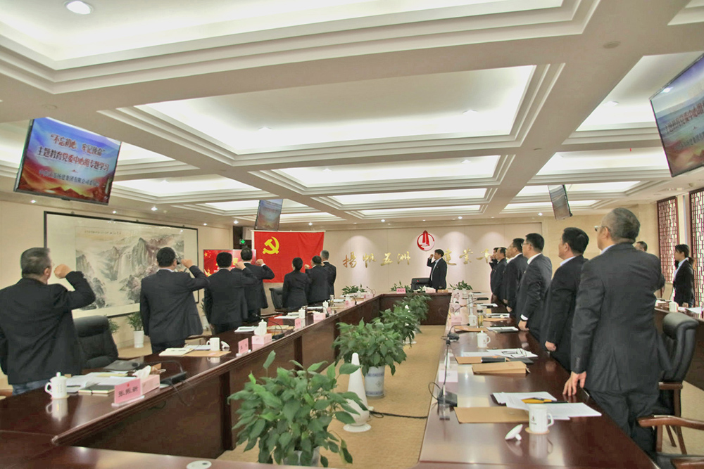 揚建網訊 為深入貫徹落實關于開展“不忘初心,牢記使命”主題教育活動的要求、進一步提高集團黨員干部的思想道德修養,10月26日下午,集團黨委中心組在運河城市廣場辦公區11樓會議室開展了“不忘初心,牢記使命”主題教育專題學習活動。活動由集團黨委書記康往東主持,黨委中心組全體成員參加。與會成員均統一著裝并佩戴黨徽。