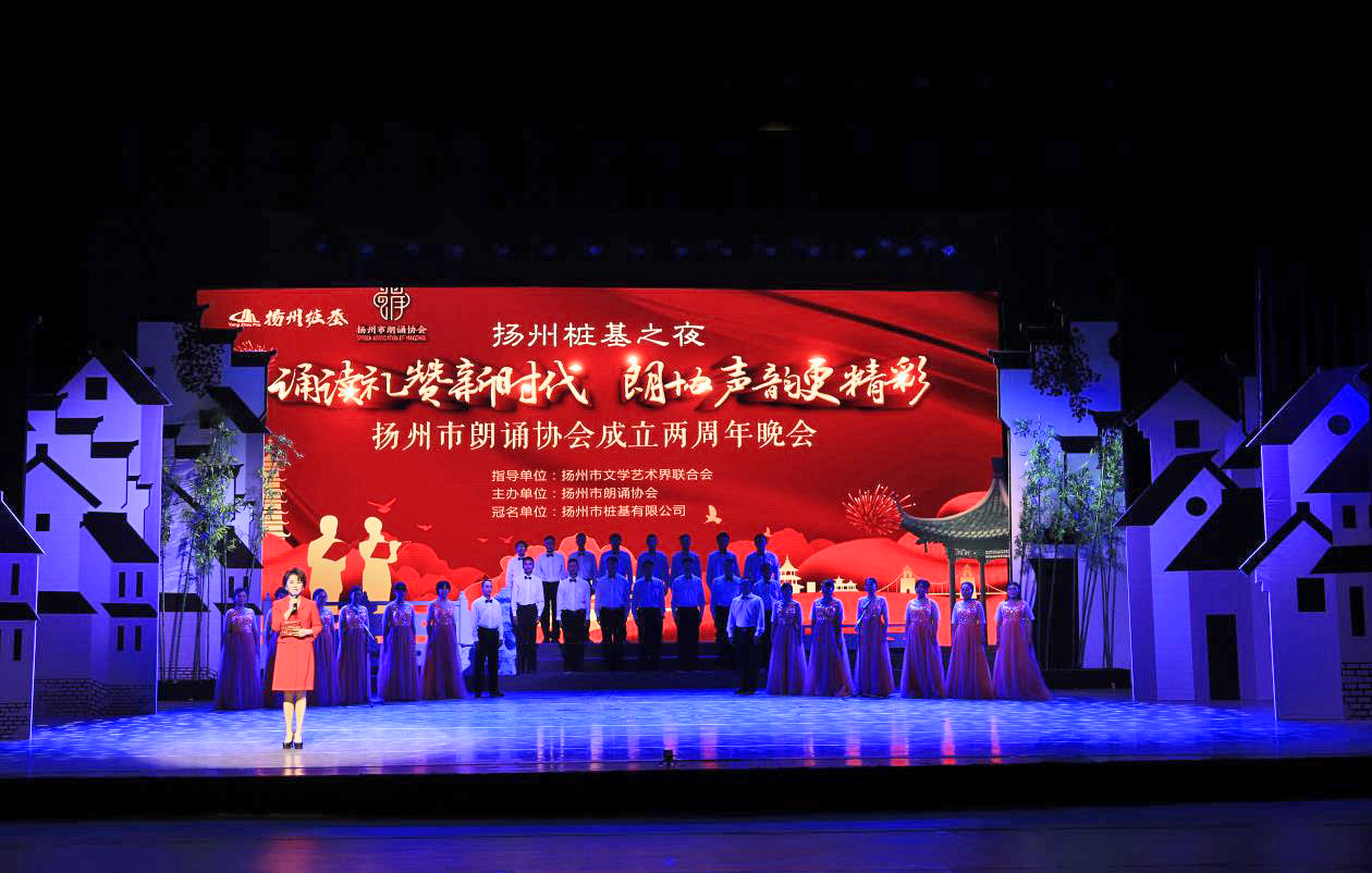 揚建網訊 10月27日,由揚州朗誦協會主辦,樁基公司冠名的“揚州樁基之夜·誦讀禮贊新時代,朗協聲韻更精彩”朗誦會在揚州大劇院舉行,近百位揚州的朗讀者奉上了一場詩詞的盛宴。