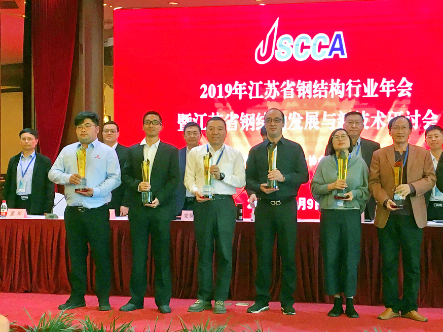 揚建網訊 11月9日,2019年江蘇省鋼結構行業年會暨江蘇省鋼結構發展與新技術研討會在江蘇靖江召開,會議表彰了上年度鋼結構行業的先進,集團鋼結構分公司承建的南部體育公園鋼結構工程、揚州市游泳健身中心鋼結構工程、江蘇旅游職業學院(一期)鋼結構工程、揚州市經濟技術開發區振興花園學校鋼結構工程獲得2018年度江蘇省優質工程獎揚子杯。與此同時,鋼結構分公司深化設計的新大劇院建設工程A區鋼結構BIM技術獲得第一屆江蘇省鋼結構工程BIM技術應用大賽一等獎,南部體育公園鋼結構BIM技術、揚州軟件園產業孵化基地箱式公寓BIM技術獲得二等獎。