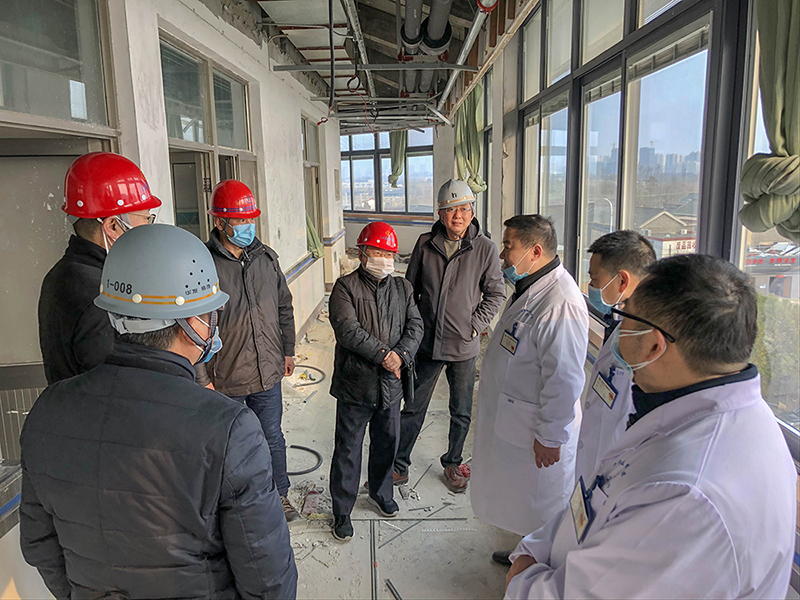 1月27日(正月初三)下午,揚(yáng)州市市長(zhǎng)張寶娟來(lái)到市三院,現(xiàn)場(chǎng)調(diào)研新型冠狀病毒感染的肺炎疫情防控工作;市衛(wèi)健委主任趙國(guó)祥、建工控股董事長(zhǎng)王宏、揚(yáng)建集團(tuán)總經(jīng)理鄒厚存等相關(guān)領(lǐng)導(dǎo)陪同,并匯報(bào)了關(guān)于新建100間箱式板房工程施工方案和進(jìn)度計(jì)劃。由于時(shí)間急如星火,為確保及時(shí)投入使用,經(jīng)揚(yáng)州市委最終決定,取消原100間板房的建設(shè)計(jì)劃,改為將原醫(yī)院4#樓改造為治療醫(yī)生和護(hù)士的隔離生活區(qū)。該病房改造項(xiàng)目為5層,總面積約6000㎡,1~3層要求正月十五完成,4層要求正月二十結(jié)束。具體由揚(yáng)建集團(tuán)華發(fā)公司負(fù)責(zé)設(shè)計(jì)并牽頭施工。華發(fā)公司設(shè)計(jì)經(jīng)理薛愛(ài)遐參與制定了設(shè)計(jì)方案。
