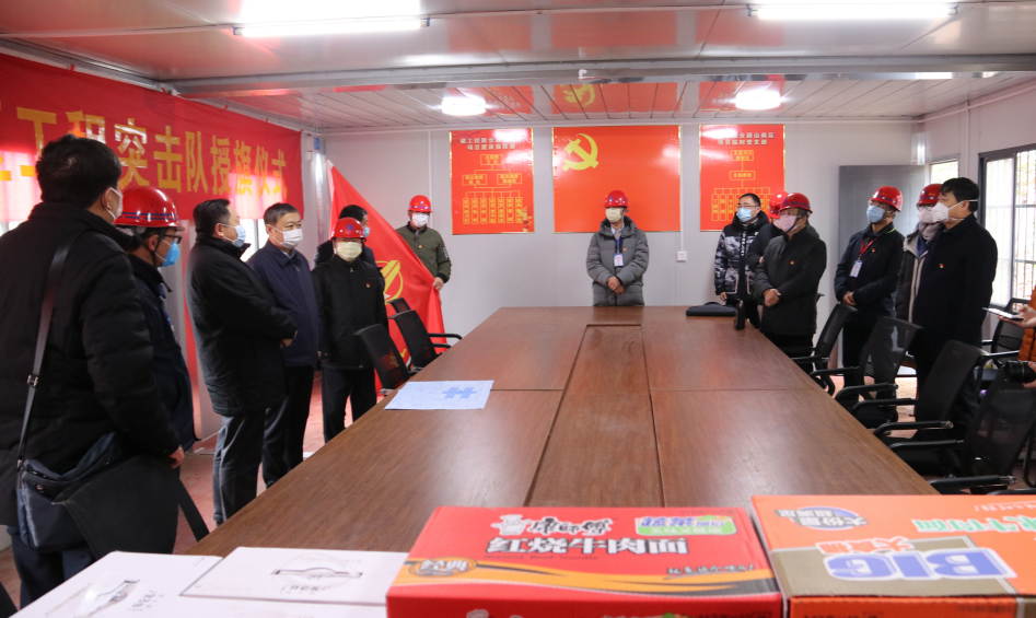 揚建網訊 2月7日下午,市國資委主任王慶山蒞臨我集團蒼頡山病區項目慰問一線施工人員并向項目部授授旗。