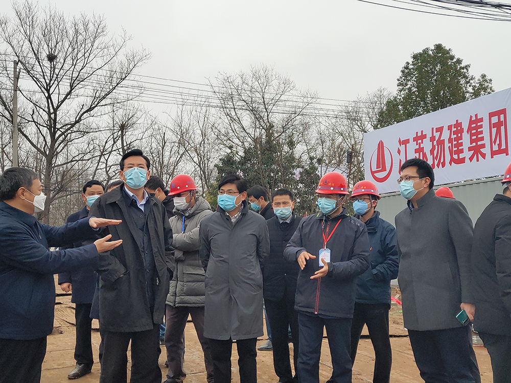 揚建微訊 2月11日下午3時許,揚州市副市長何金發及蘇北人民醫院院長束余聲等領導一行再次蒞臨我集團蒼頡山病區項目視察工程進展情況。