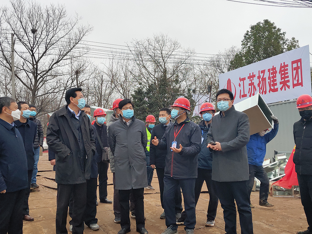 在充分了解情況后,何金發副市長現場聯系了江都區相關領導,要求江都市委市政府在做好各項防護措施的基礎上動員相關企業開足馬力,集中力量支持病區的生產建設。在深入考察了現場的建設情況后,何市長和束院長對我集團的現場管理情況表示滿意,尤其對病區的分區明確,系統清晰,流程規范提出了表揚。