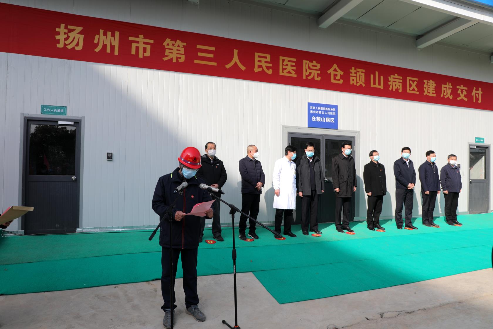 我集團鄒厚存總經理代表項目總包方發言。鄒總表示,在市委市府的正確領導下,揚建人日夜奮戰半個月,排除萬難,如期完成了突擊建設任務,為我市早日打贏抗擊疫情的人民戰爭提供了新的希望和堅強保障。鄒總指出,倉頡山建設項目是政治工程,更是生命工程,在疫情和春節交織的非常時期,在千村封路、萬家閉戶的特殊時期,揚建人眾志成城,展現了地方龍頭企業的擔當,克服了一系列困難,為抗擊疫情做了揚建人力所能及的事。