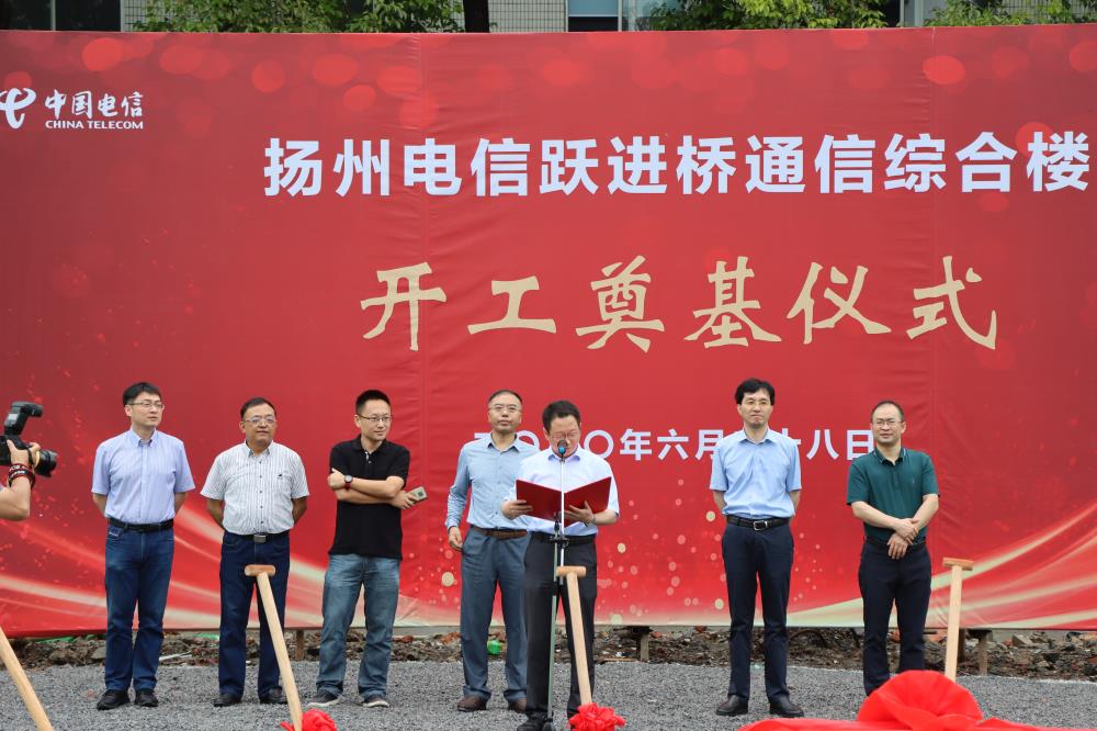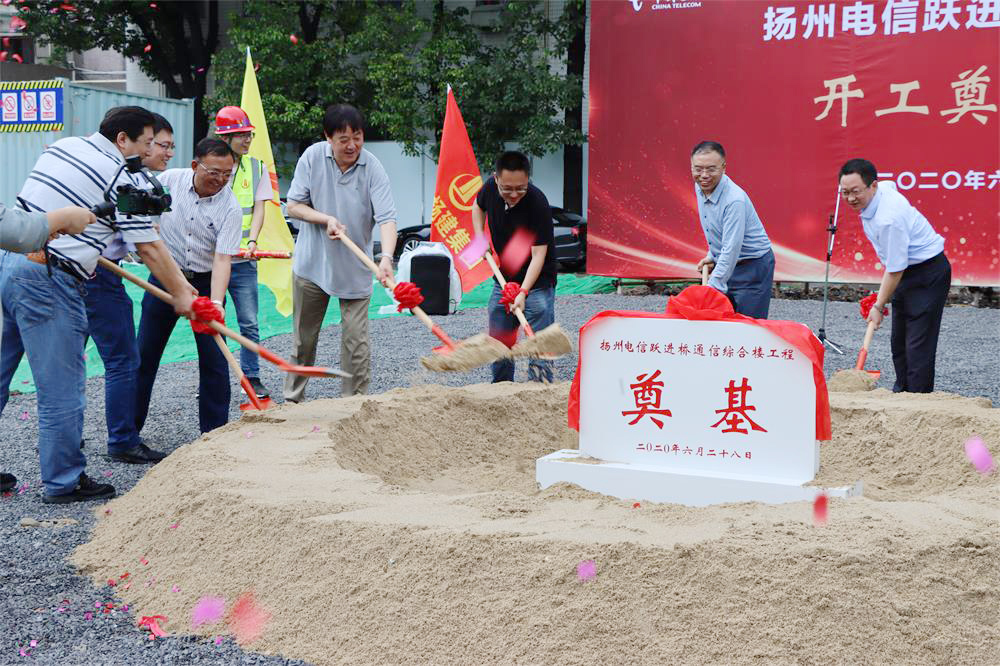 揚建網訊 6月28號下午,由集團總包承建的揚州電信躍進橋通信綜合樓開工奠基儀式在運河西路揚州躍進橋通信大院內順利舉行。揚州電信黨委書記兼總經理郭劍、我集團總經理鄒厚存、副總陳寶中及各參建方代表等出席活動。