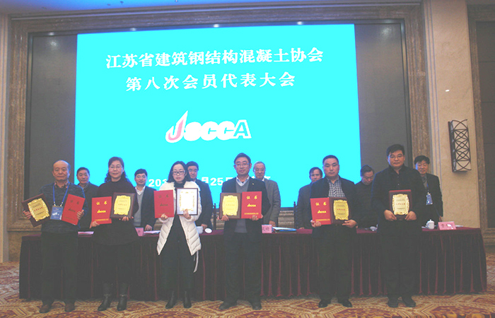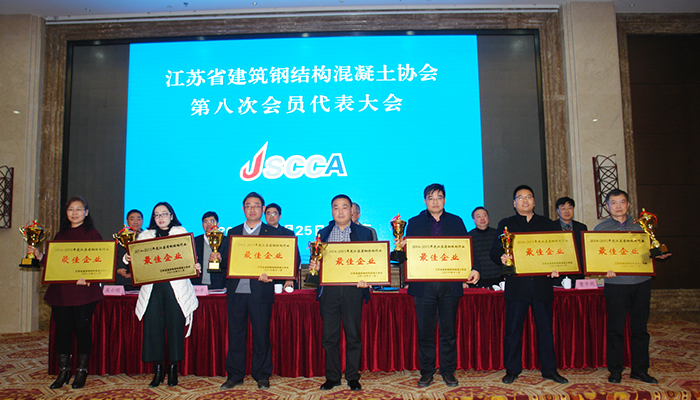 揚建網訊(鋼結構 王晨)12月25日,江蘇省建筑鋼結構混凝土協會第八次會員代表大會在南京召開。本次大會對獲獎企業及個人進行了表彰,鋼結構分公司代表揚建集團獲得“2014-2015年度江蘇省鋼結構行業最佳企業”,連續四年蟬聯此項殊榮;王盛祥被評為“2014-2015年度江蘇省鋼結構行業優秀企業家”。