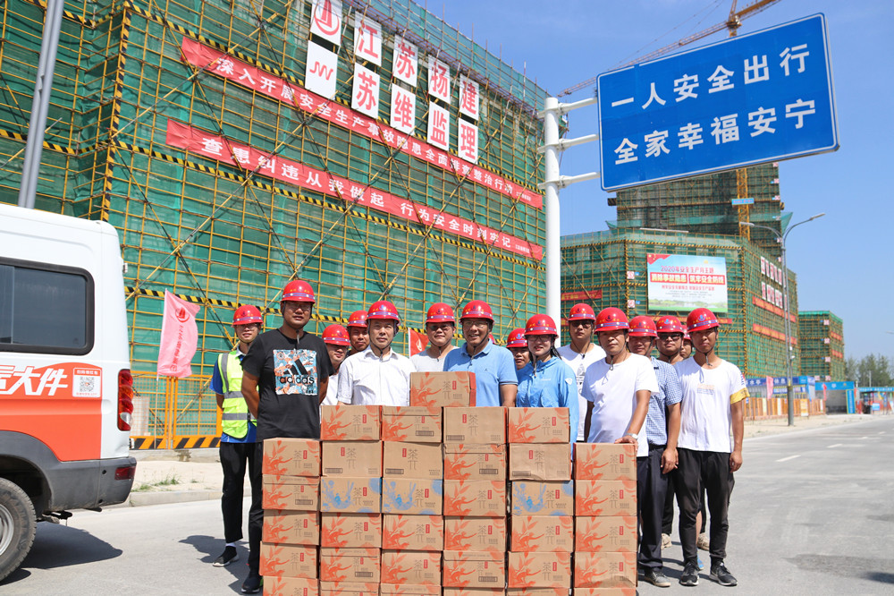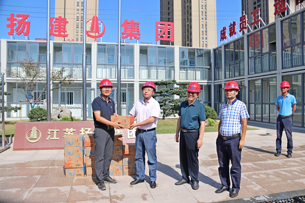 揚建網訊 近來,天氣連續高溫。8月3日至6日,集團在揚主要領導率相關部室負責人先后赴揚州軟件園一期項目 、揚州生態科技新城人才公寓項目二標段 、蘇中智慧農業產業示范城C地塊項目 、揚州頤和醫療健康中心二標段 、揚州GZ118地塊項目 、儀征2017-39#地塊、儀征鋼結構廠房項目、華晟新型建筑科技等近10個項目部進行夏季慰問,為冒著酷暑奮戰在一線的項目部管理人員、施工人員送去了片片清涼和絲絲暖意。