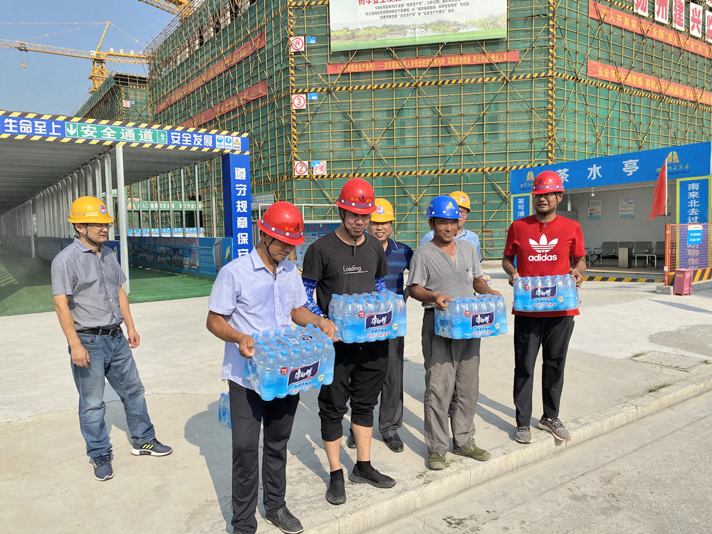 朱副調研員要求項目部要切實關心一線建筑工人,高溫期間要科學合理安排作息時間,“抓兩頭、歇中間”,認真落實好防暑降溫的各項措施,保證防護飲品、藥品的供應,努力克服雨季、高溫等不利因素影響,確保安全生產。