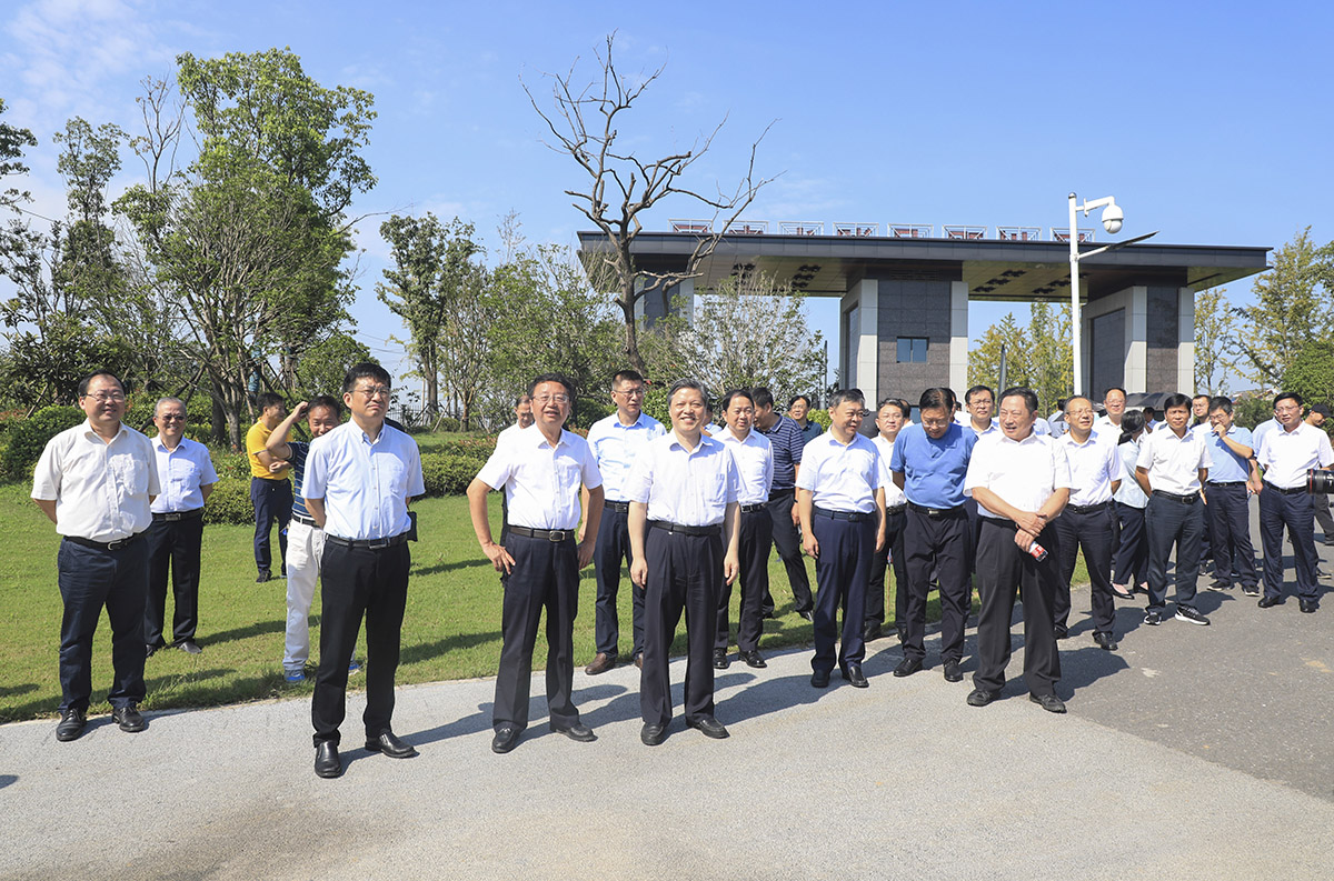 揚建網訊 9月4日上午,揚州市國資系統“千企聯千村,共走振興路”行動舉辦現場推進會,并組織到我集團觀月湖生態農莊進行了現場觀摩。揚州市委副書記孔令俊、江蘇省國資委一級巡視員李琨、省農業農村廳副廳長許善平、省國資委群眾處洪俊、省經管站四級調研員冷媛、市委副秘書長張貴強、市政府副秘書長雍有瑜、市國資委黨委書記、主任王慶山、市農業農村局局長馬順圣、儀征市市長孫建年等領導蒞臨現場參觀了集團觀月湖生態農業旅游聯建項目。集團公司董事長康往東、集團黨委副書記張振新、集團副總裁楊志娟等陪同參觀。