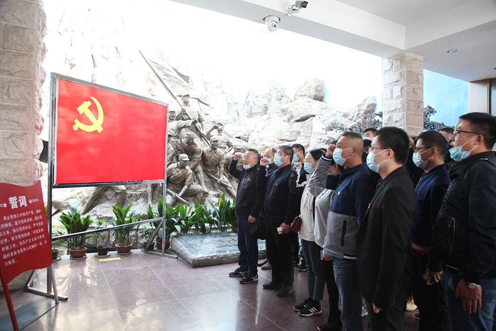 進(jìn)入茅山新四軍紀(jì)念館后,黨總支副書記李浩煒首先帶領(lǐng)所有黨員重溫了入黨誓詞。