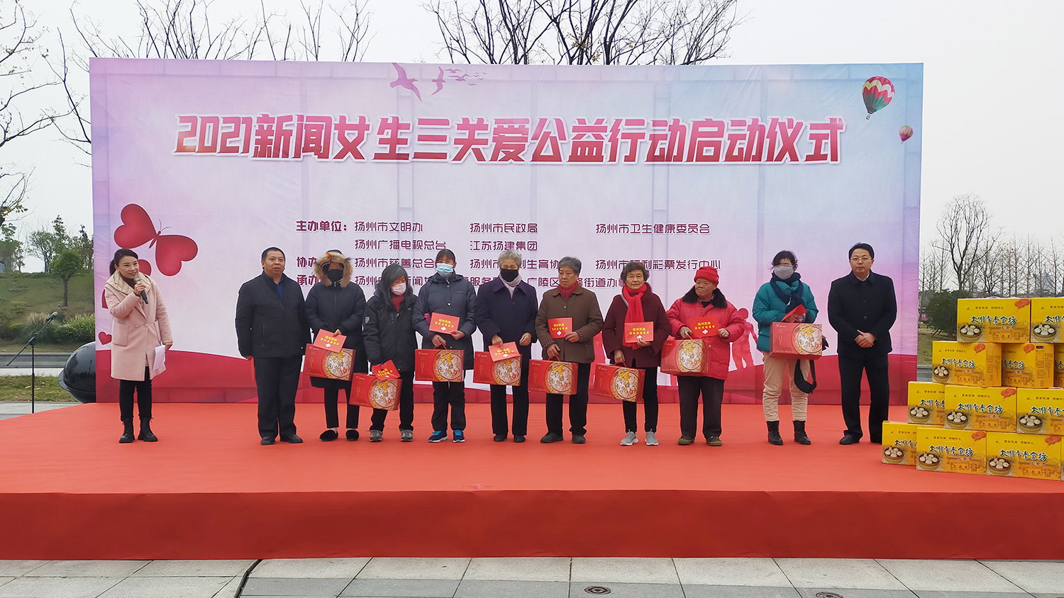 揚建網(wǎng)訊 12月8日上午,由揚州市文明辦、揚州市民政局、揚州市衛(wèi)生健康委員會、揚州廣播電視總臺和我集團共同主辦的“2021新聞女生三關(guān)愛大型公益行動”在七里河公園舉行了隆重的啟動儀式。市委宣傳部副部長、市文明辦主任蔣元峰、市民政局副局長錢建忠、我集團黨委副書記、副總經(jīng)理陳滸和揚州廣電集團黨委委員、副總編輯白潔蕓等社會各界領(lǐng)導出席本次活動。
