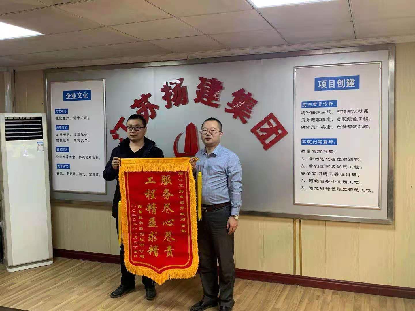 隆基泰和集團(tuán)向江蘇揚(yáng)建集團(tuán)北方公司贈送錦旗