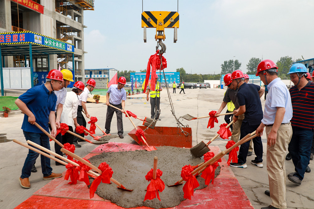 儀式上,徐祥華書記、耿輝董事長在現場向全體參建人員表示了敬意和感謝,發放了夏季慰問品,并聽取了鄒厚存總經理、劉海斌副總經理關于項目施工整體進展及項目BMI+智慧工地建設等情況的介紹。他們贊揚揚建集團能打硬仗、漂亮仗,取得了項目主體結構全部封頂的階段性成果,以優異的建設業績向建黨100周年獻禮;同時表示,將大力支持揚建集團將該項目創建成國家級優質工程,希望參加單位共同做好項目后續“細作”工作,工程質量體現“精致揚州”的建設品質,為推進技術學院高質量發展、為揚州培養更多高技能人才作出應有的貢獻。