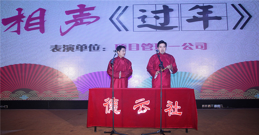 隨后,集團總部員工為大家帶來了中國風舞蹈《詠春》;項目管理一公司員工獻上了相聲表演《過年》;樁基公司則精心準備了合唱《到吳起鎮》、朗誦《擼起袖子加油干》、舞蹈《BANG BANG BANG》等三個節目。