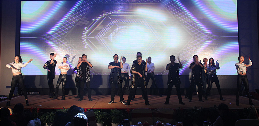 接下來,華中、華鼎兩單位員工聯合表演了現代舞蹈《青春舞曲》;二公司員工獻演了歌舞《揚建緣》;建祥公司職工小家屬賈宇晨等小朋友演奏了架子鼓《逆戰》。在兩輪互動節目《微信搖一搖》之后,四公司員工表演了爵士舞《Senorita》;三公司員工表演了五人情景劇《工地激情》;機電環保公司員工表演了《手勢舞》;華達房地產公司獻演了小品《星悅誠服》;華發公司員工表演了音樂舞蹈劇《傳承》;市政分公司員工表演了舞蹈《舞動青春》。
