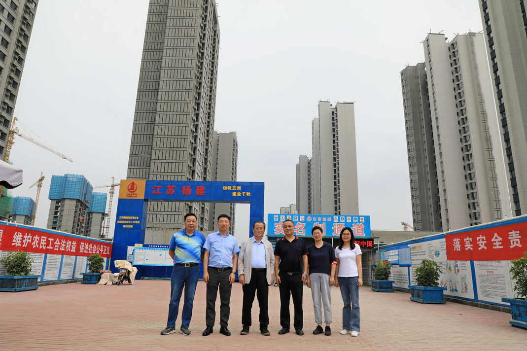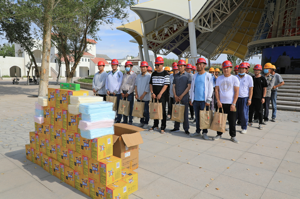 揚建網訊 7月14日至20日,集團理事會主席曹德榮、工會主席孔凡裕等一行五人先后來到北方公司天津招商公園1872項目、新疆分公司西部烏鎮項目慰問一線施工人員,為冒著酷暑奮戰在一線的項目部管理人員、施工人員送去了飲料等防暑降溫用品。