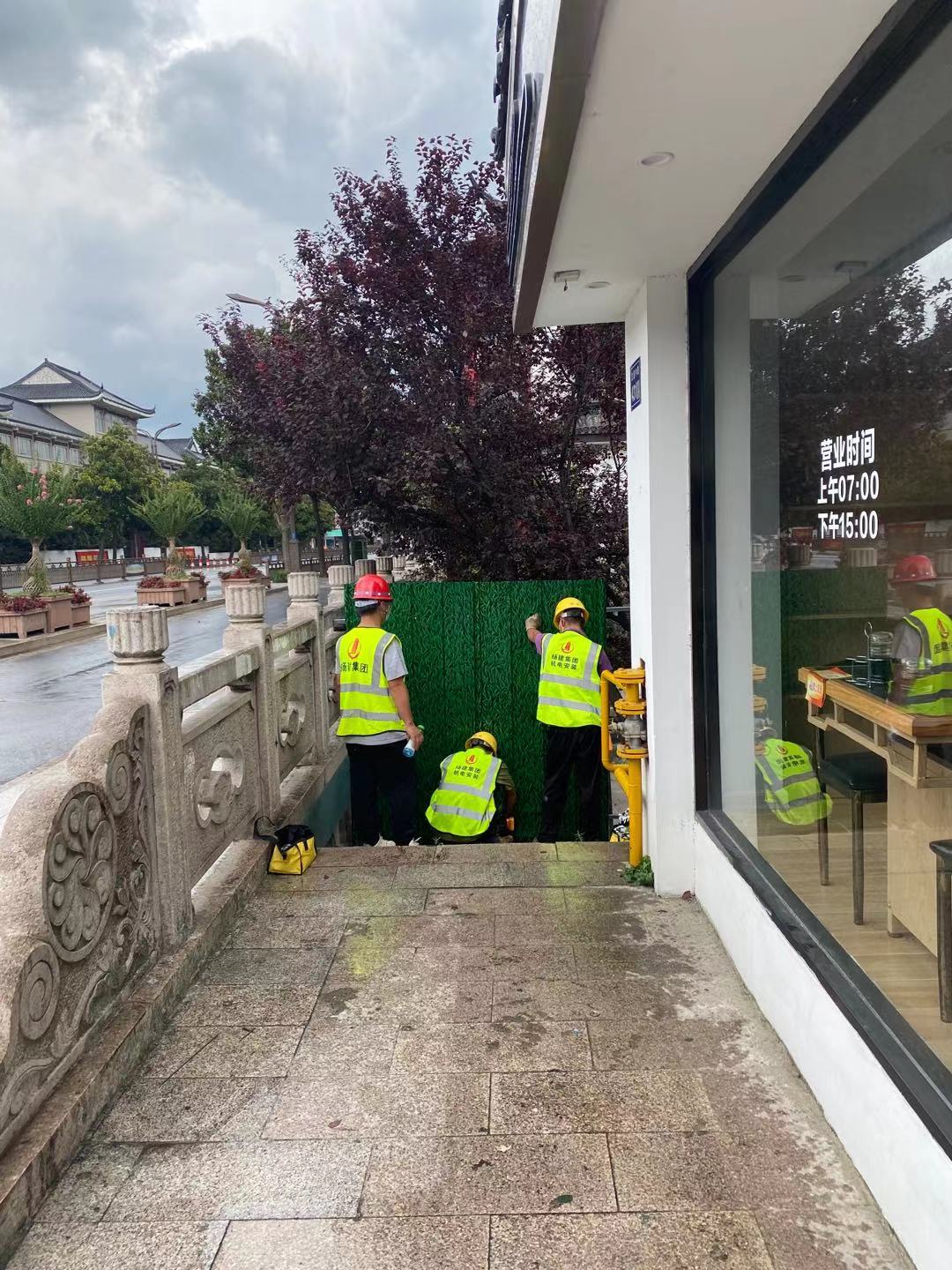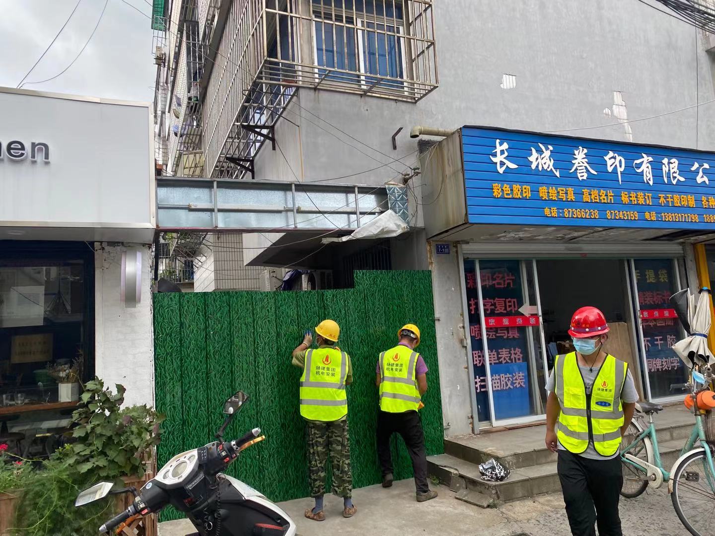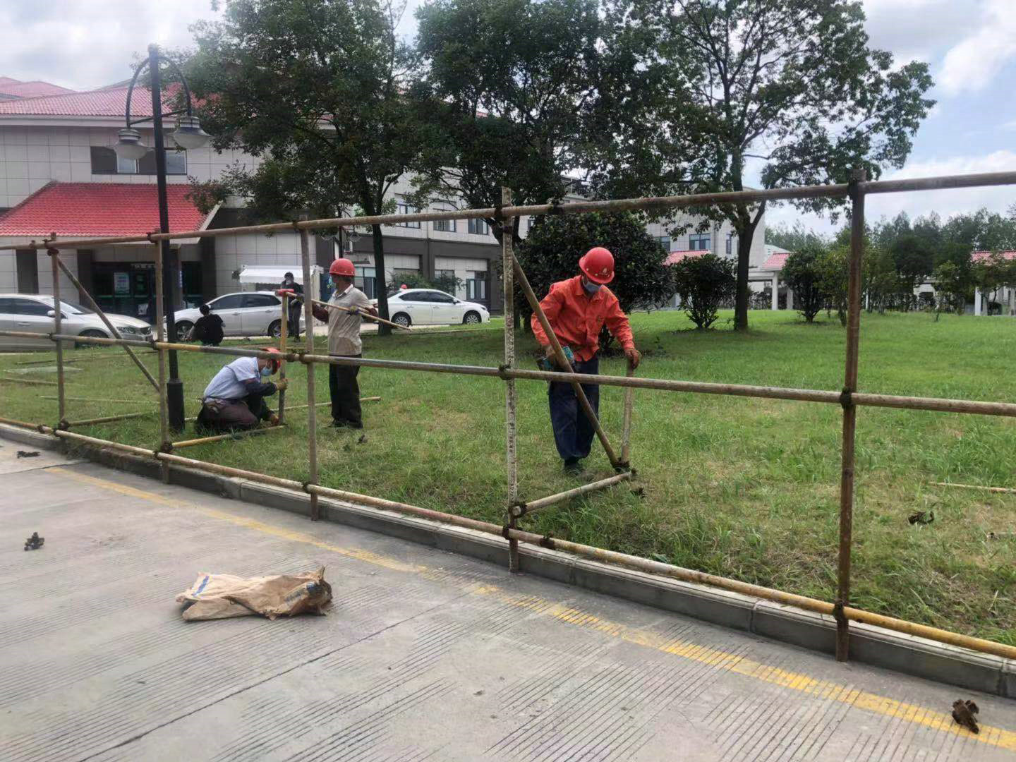 同日,因疫情防控網(wǎng)格化管理要求,需要在東關(guān)街道小區(qū)出入口及部分道路岔口設(shè)置圍擋。在接到東關(guān)街道求援后,我集團(tuán)旗下江蘇運(yùn)揚(yáng)工程建設(shè)有限公司(原“新?lián)P建”)立刻安排九龍八期項目部八名工人,在韓璇卿、王云兩同志帶領(lǐng)下趕往現(xiàn)場投入緊張施工,并于當(dāng)日順利完成了突擊任務(wù)。