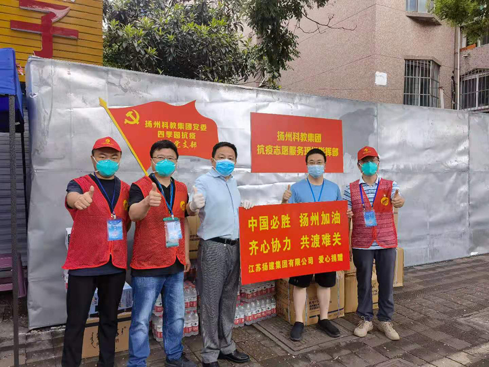 又訊: 8月12日,集團公司副總經理、三公司經理劉海斌代表集團攜1500套防護服、5000個KN95口罩、5000個面罩,數百箱礦泉水、紅牛、八寶粥等,赴市科教集團所執行的四季園小區和南門街小區以及市運河文投集團所執行的揚汽宿舍點慰問黨員志愿服務隊,對他們夜以繼日的付出表示崇高的敬意。科教集團黨委副書記戴壯明、副總經理朱曉東、段如旭和運河文投集團黨委副書記、總經理朱宏兵參加上述活動。他們對揚建集團及時的愛心捐助表示了衷心感謝,并共同表達了齊心協力、眾志成城早日戰勝疫情的信心與決心。