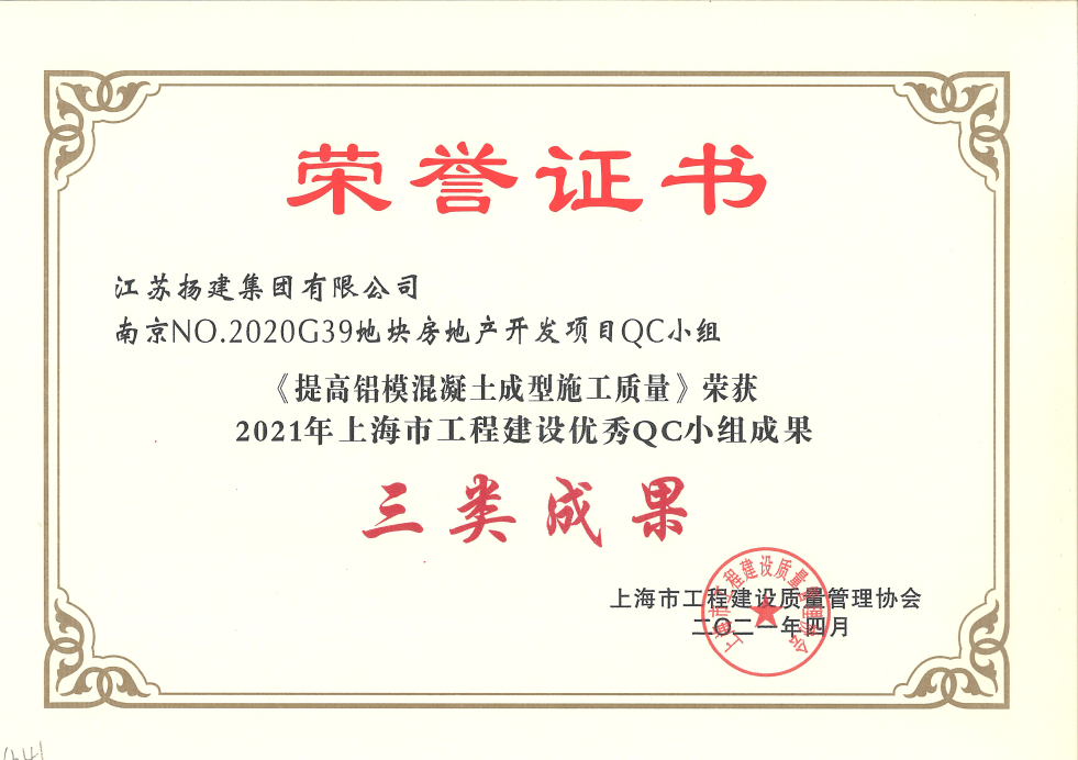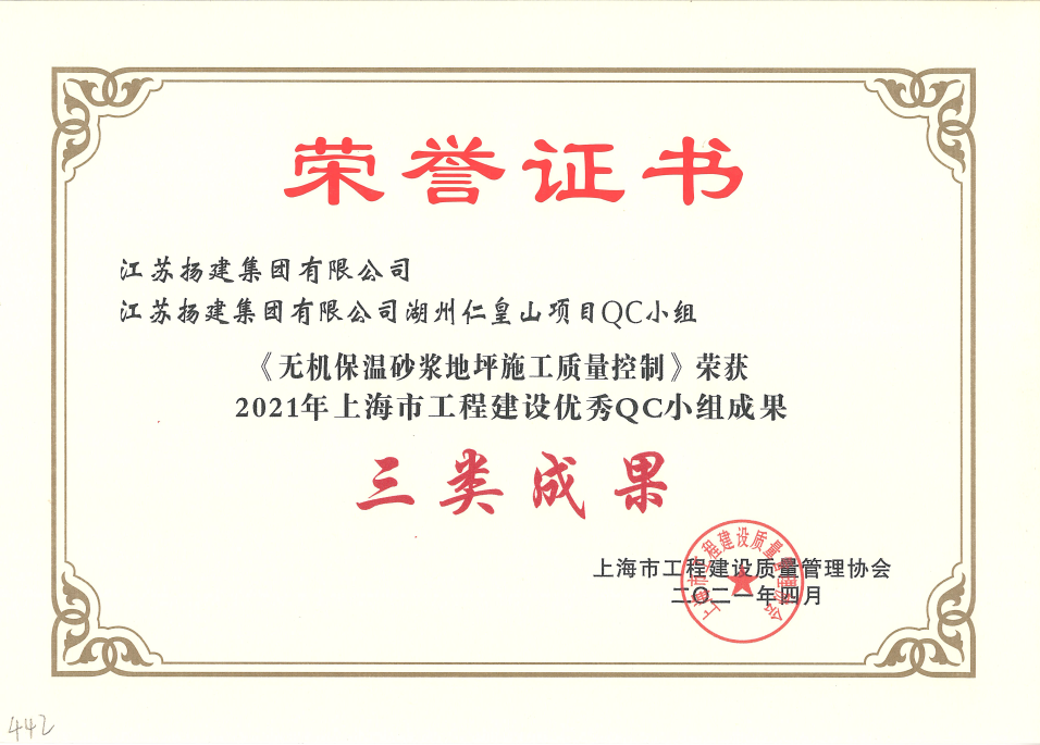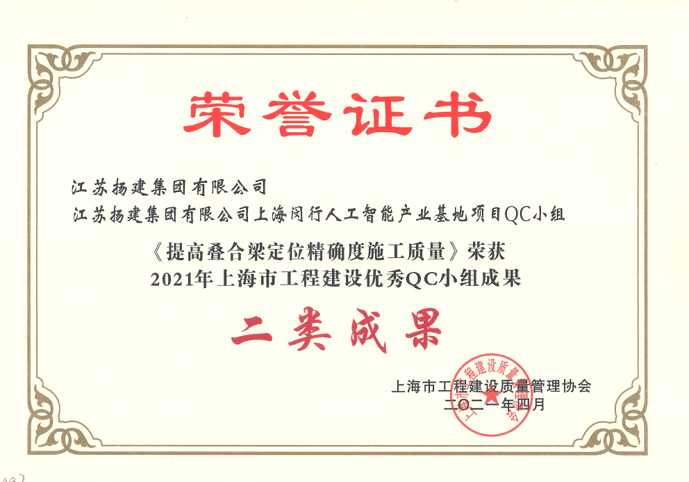 同時,在四公司報送的三項QC小組成果中,《提高疊合梁定位精確度施工質量》榮獲2021年上海市工程建設優秀QC小組成果二類成果獎;《無機保溫砂漿地坪施工質量控制》《提高鋁模混凝土成型施工質量》榮獲2021年上海市工程建設優秀QC小組成果三類成果獎。