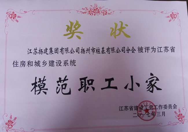 郭太琮)在省城鄉建設系統職工勞動競賽和建設工會工作評比中,我集團榮獲2016年度江蘇省住房和城鄉建設系統勞動競賽“有功單位”、“和諧勞動關系模范企業”、“安康杯”競賽優勝單位;揚州市樁基有限公司被評為2016年度江蘇省住房和城鄉建設系統“模范職工小家”榮譽稱號;揚州華鼎投資咨詢有限公司被評為2016年度江蘇省住房和城鄉建設系統“五一巾幗標兵崗”榮譽稱號。