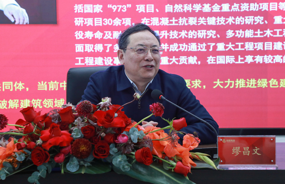 隨后,繆昌文院士作了指導(dǎo)講話。他強(qiáng)調(diào)要重視工程質(zhì)量、智能建造、科技是第一生產(chǎn)力、培養(yǎng)一流人才,提供一流的科研條件、產(chǎn)生一流的成果、創(chuàng)造一流的效益;希望揚(yáng)建大力推進(jìn)綠色、智慧、創(chuàng)新發(fā)展,研究自流平、自密實(shí)混凝土、加強(qiáng)智能管理等;在公司內(nèi)部選拔專業(yè)型人才進(jìn)一步培養(yǎng)碩士、博士團(tuán)隊(duì),壯大人才隊(duì)伍,為企業(yè)發(fā)展打下堅(jiān)實(shí)的基礎(chǔ);本著人無我有、人有我優(yōu)的精神,促進(jìn)員工政治素養(yǎng)和業(yè)務(wù)素養(yǎng)同步發(fā)展。