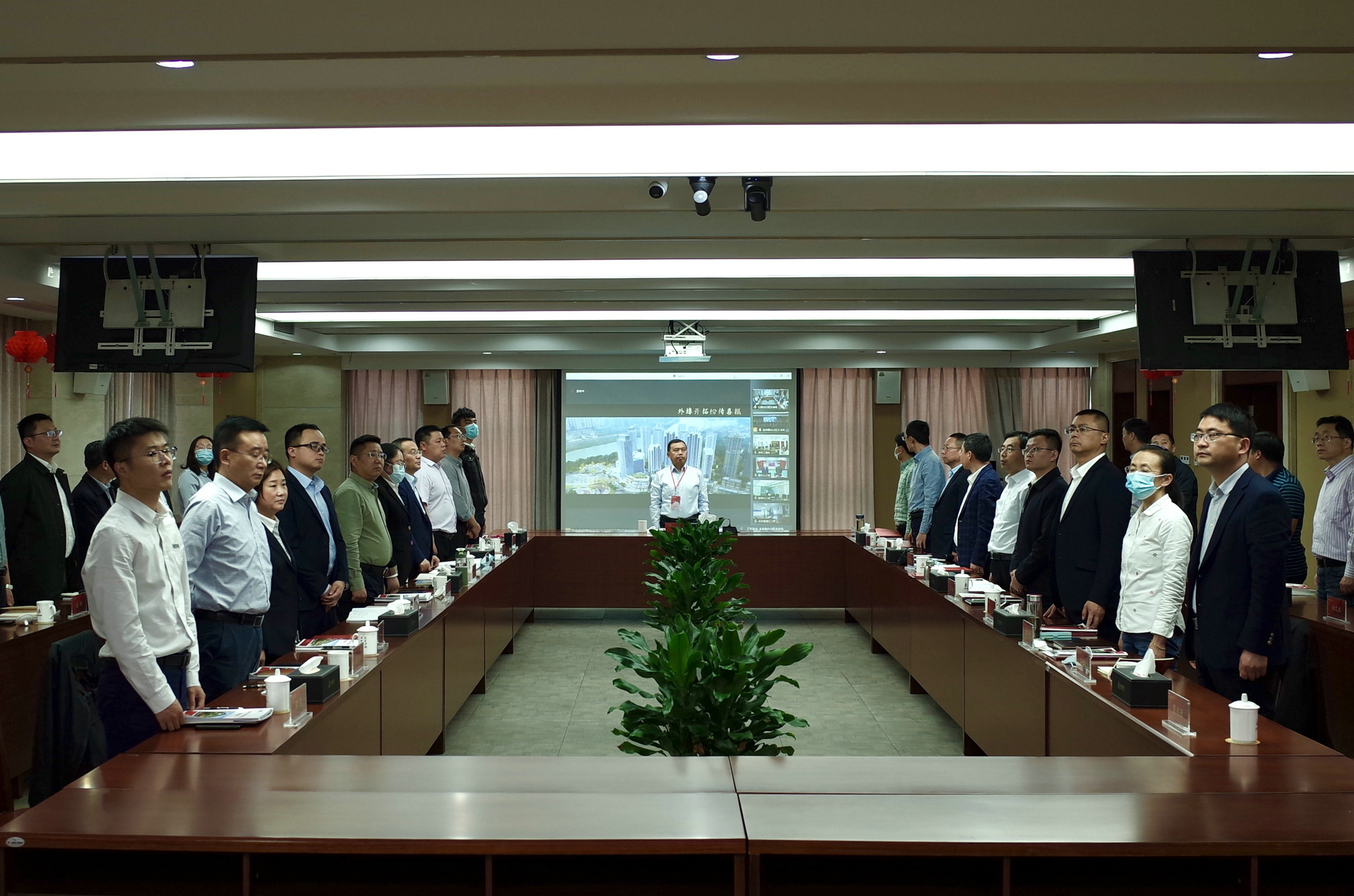 揚建網訊 4月9日,集團第四次職工(會員)代表大會在鹽阜西路集團總部七樓會議室隆重召開。本次會議正式代表121名,5名代表因公請假,實際到會116名;另有18名基層、部門負責人及黨務工作者列席。根據疫情防控要求,本次會議設立了集團總部主會場和文昌辦公區、揚建產業園、各外埠單位等11個分會場,各分會場代表通過視頻連線方式同步參會。