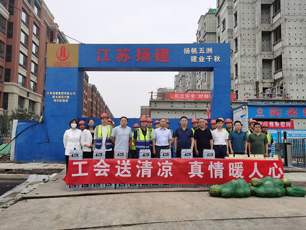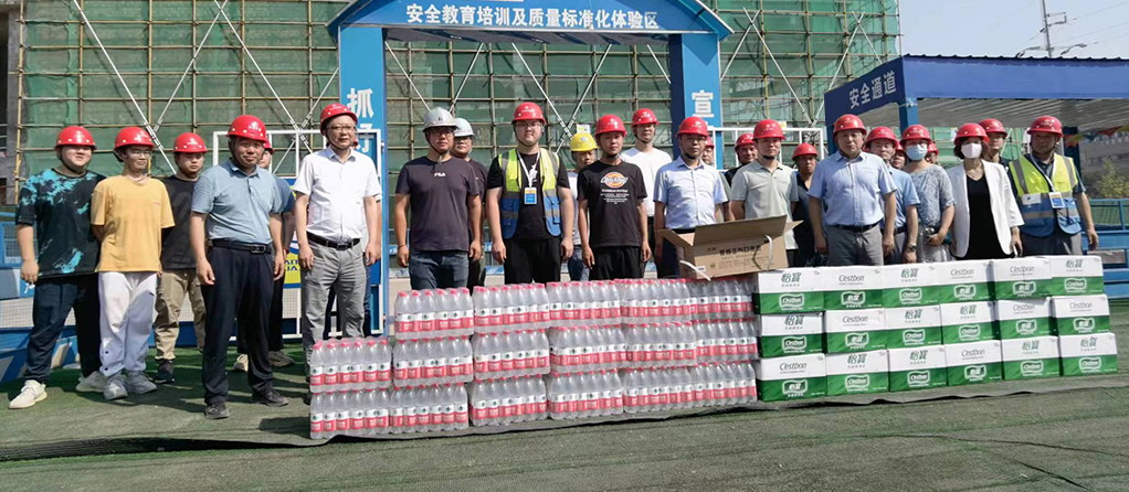 集團工會主席劉海斌對冒著酷暑奮戰在一線的項目人員表示了親切慰問,并要求各公司一定要調整好項目施工的作息時間,進行錯峰作業,保證一線員工充分的休息時間,注意夏季食品安全,切實做好防暑降溫工作;并為大家送來防暑降溫飲料、水果及藥品。