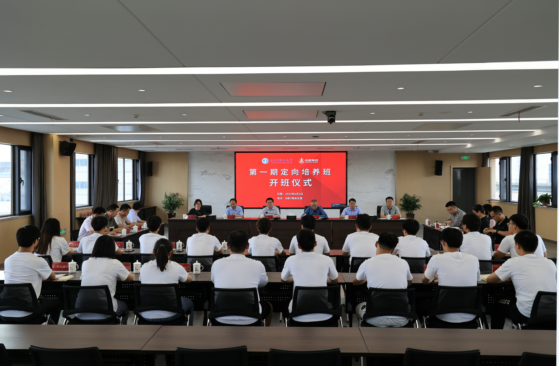 揚建網訊 6月2日下午,揚州市職業大學“揚建班”開班儀式在集團總部B座7樓會議室隆重舉行。該班為我集團與揚州市職業大學校企合作項目,旨在定向培養建筑業發展所需專業人才。集團黨委副書記呂國兵、陳滸、揚州職大副校長劉宏、職大土木工程學院書記呂凡任、院長王欣等出席,校企雙方相關老師、工作人員及第一期“揚建班”全體學員參加。