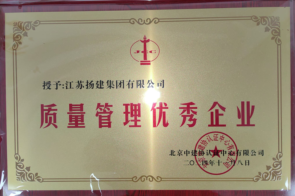 又訊:揚建集團同期被北京中建協認證中心授予“質量管理優秀企業”稱號。