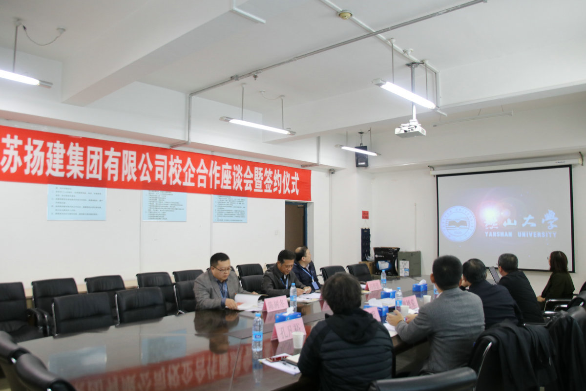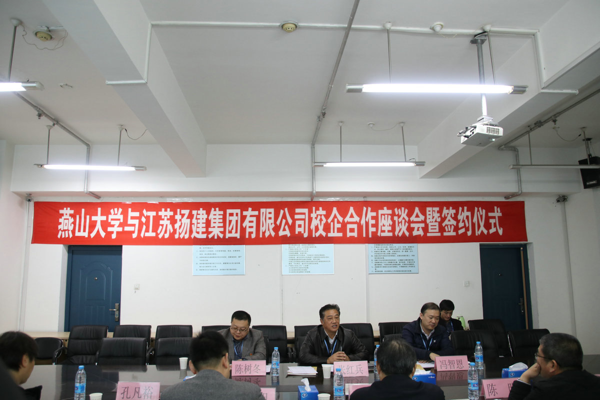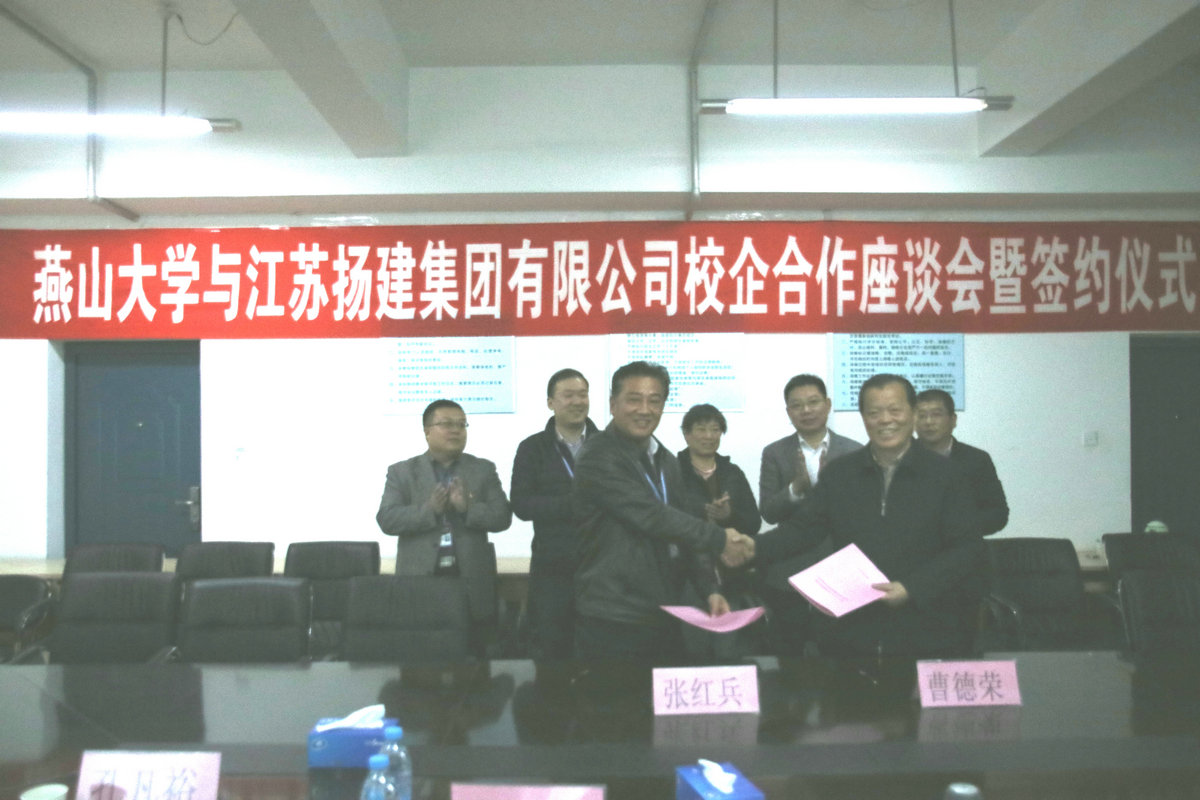 座談過程中,雙方首先觀看了各自的宣傳片,增進了相互了解。隨后,燕大張處長介紹該校簡要校史、發展概況和畢業生就業情況;我集團曹董事長介紹了揚建的發展概況和人才需求情況;許世明董事就近年來揚建集團引進、培養和使用的燕山大學優秀畢業生情況作了介紹。最后,他們代表校企雙方正式簽署了《燕山大學-江蘇揚建集團有限公司校企合作協議》。根據該協議,我集團將在燕大設立優秀生源基地,燕大將在我集團設立畢業生就業基地;雙方定期聯系,建立人才供需信息互動機制;不定期互訪,雙方在人才培養與就業、在職骨干深造、教學改革、專業設置、產學研合作、互派導師或顧問等方面更好互動、深入合作。