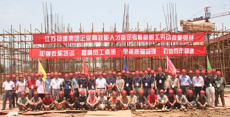 2009年6月22日至23日,集團在揚州市體育運動學校遷建工程施工現場舉辦了“企業高技能人才鑒定考核暨職工勞動技能競賽”,揚州市勞動和社會保障局顏軍副局長等領導和曹德榮、楊志娟、鄒厚存、張振新等集團領導蒞臨現場指導。經過40名選手的精心準備和認真努力,整個鑒定考核工作取得了圓滿成功。