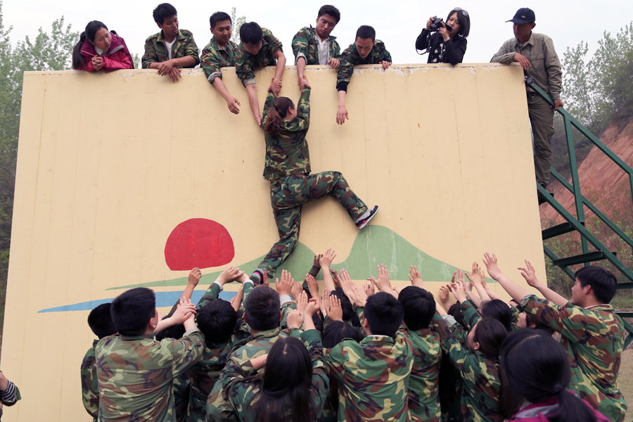 緊接著用一天的時(shí)間進(jìn)行了《瘋狂市場(chǎng)》、《鼓動(dòng)人心》、《急速前進(jìn)》、《穿越電網(wǎng)》和《畢業(yè)墻》等項(xiàng)目,每一個(gè)項(xiàng)目都將團(tuán)隊(duì)的團(tuán)結(jié)合作、內(nèi)部溝通和集體榮譽(yù)體現(xiàn)的淋漓盡致,每一個(gè)項(xiàng)目都強(qiáng)調(diào)隊(duì)員之間的分工合作、計(jì)劃和執(zhí)行的完美結(jié)合,每一個(gè)項(xiàng)目都體現(xiàn)了個(gè)人自我與團(tuán)隊(duì)集體的適應(yīng)和再適應(yīng)的必要過(guò)程。尤其是在《畢業(yè)墻》項(xiàng)目的實(shí)施過(guò)程中,將隊(duì)員之間密切合作克服困難的團(tuán)隊(duì)精神發(fā)揮到了極致,每個(gè)人都是積極為集體榮譽(yù)而戰(zhàn),經(jīng)過(guò)大家的密切配合,41名隊(duì)友全部翻越高4.2米的畢業(yè)墻,圓滿(mǎn)完成拓展訓(xùn)練,體驗(yàn)到了勝利喜悅和團(tuán)隊(duì)榮譽(yù)感。