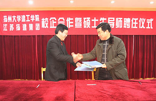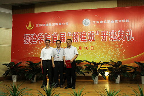 2011年11月10日,集團舉辦與江蘇建筑職業技術學院校企聯合辦學儀式,與建院簽訂“揚建集團——江蘇建院”校企合作辦學協議,設立“揚建學院—揚建班”, 實施“訂單式”人才培養,向集團輸入所需應用型專門人才,建立長期的人力資源供需協作關系。通過“揚建班”的定向培養,不斷擴大企業的影響力,吸引各院校更多品學兼優的畢業生加盟揚建集團,為“打造百年揚建、實現百億揚建”的共同事業奉獻大家的青春、智慧和汗水。